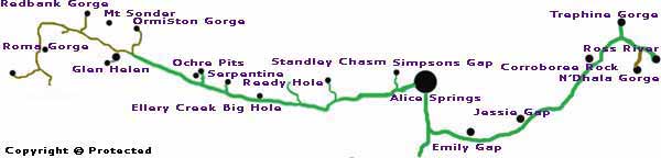 Gorge, Owen Springs, Ruby Gap and the Eastern MacDonnell Ranges.